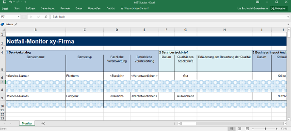Der Begriff Notfall-Monitor könnte die Vorstellung auslösen, dass es sich dabei um ein sehr komplexes Gebilde handelt. Das muss nicht so sein. Im einfachsten Fall ist der Notfall-Monitor nur eine große Tabelle und sieht so aus, wie es die Abbildung 2 andeutet.