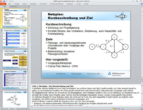 Projekte sind gemäß DIN 69901 dadurch gekennzeichnet, dass sie eine besondere, von der Tagesroutine abweichende Herausforderung darstellen, nach deren Bewältigung am Ende ein konkretes Ziel erreicht wird. Projekte sind oftmals komplex. Dies und die relative Neuartigkeit erfordern Werkzeuge, die Projektbeteiligte bei der Planung und Überwachung des Projektfortschritts unterstützen. Beides leistet die Netzplantechnik, deren Grundlagen und Begriffe in der Norm DIN 69900 beschrieben sind.