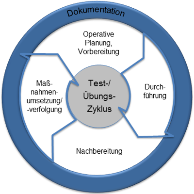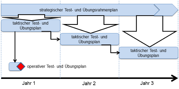 Die wesentlichen Meilensteine der Test- und Übungsplanung für die Planungs-, Durchführungs- und Nachbereitungsphase werden im Testkonzept dokumentiert. Die Detailplanung erfolgt bei umfangreichen Tests und Übungen in einer separaten Planung.