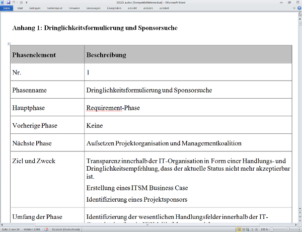 Wenn Sie ITSM-Prozesse innerhalb eines vereinbarten Kosten- und Zeitrahmens abschließen und dabei auch die zu erwartende Qualität abliefern wollen, kann das nur gelingen, wenn Sie stringent einem praxiserprobten Einführungsmodell folgen. Der Beitrag beschreibt das vom Autor entwickelte Referenzmodell „Intelligence Process Management Implementation Guide (IPMG)”. IPMG ist ein einheitliches und kosteneffizientes Implementierungsmodell zur Einführung von IT Service Management. Die IT Services und ITSM-Prozesse werden hierbei an der Wertschöpfungskette des Unternehmens ausgerichtet. Die Einführung erfolgt in neun Phasen. Die einzelnen Phasen werden im Anhang entlang checklistenartig aufgebauter Tabellen beschrieben. Arbeitshilfen: von: |