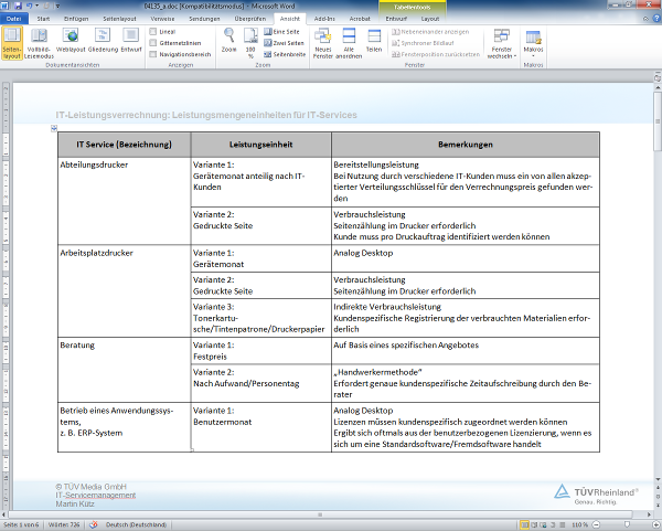 | • | Festlegung und Kommunikation von Verrechnungspreisen für die einbezogenen IT-Leistungen, |